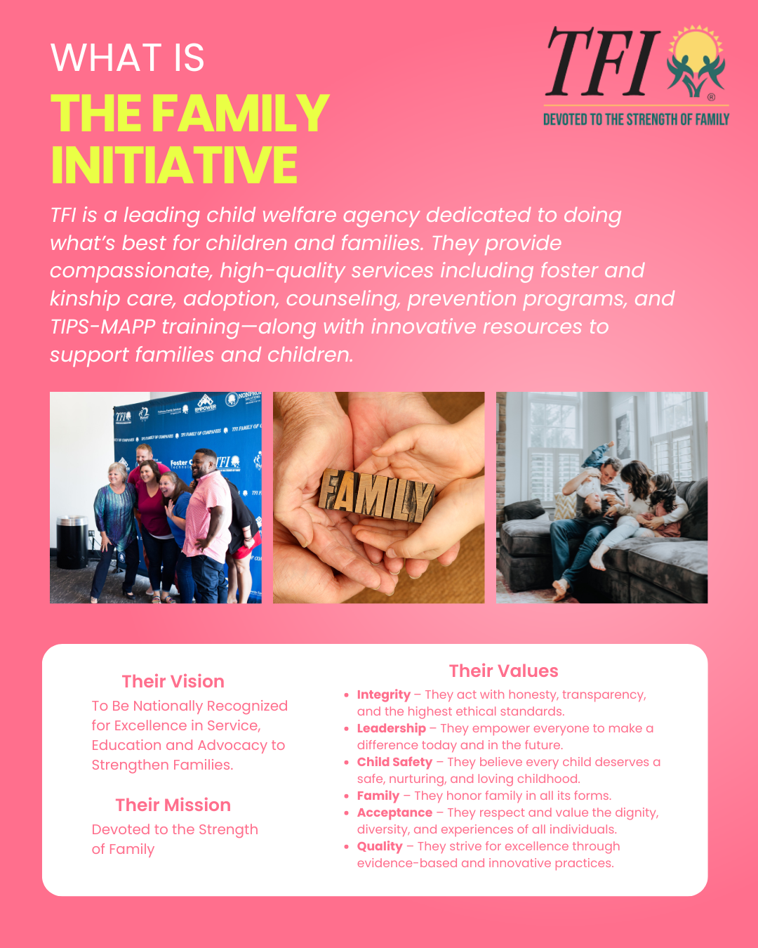 We love TFI because they pour so much heart into helping youth rise above challenges and discover their inner strength. Their work feels like giving someone their first warm cookie after a long day - comforting, full of hope, and a little reminder that they’re not alone. Being able to support an organization that lifts young people means the world to us.