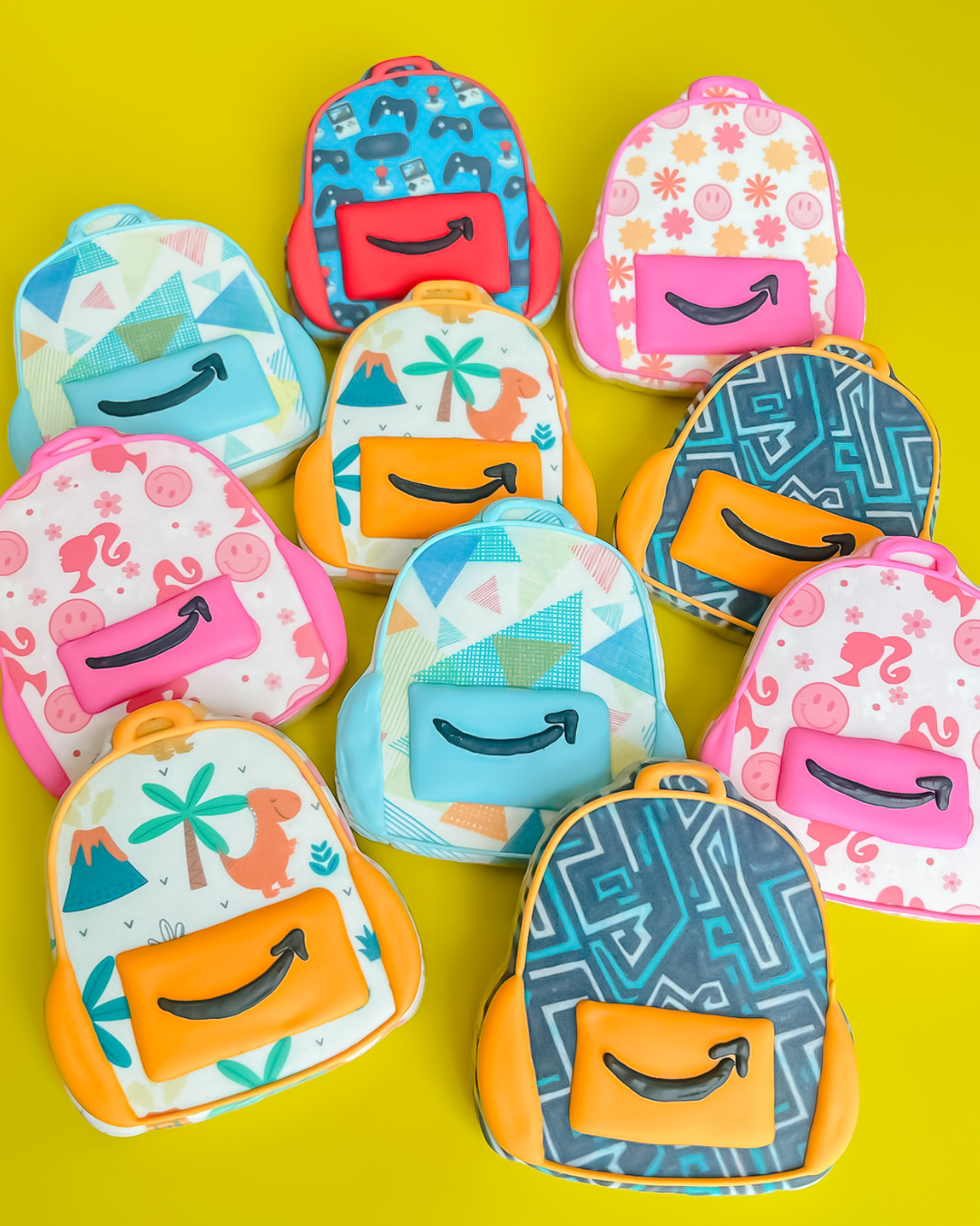 These aren't just cookies, they're an adventure in every bite! Each one is meticulously crafted to resemble a playful backpack, "packed" with vibrant designs that evoke journeys and discoveries. From geometric patterns to whimsical landscapes, these treats are ready to "carry" you away.